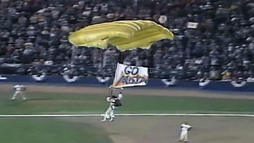 It also has me wondering: Did 1986 World Series Game 6 parachuter Michael Sergio draw any inspiration from this?