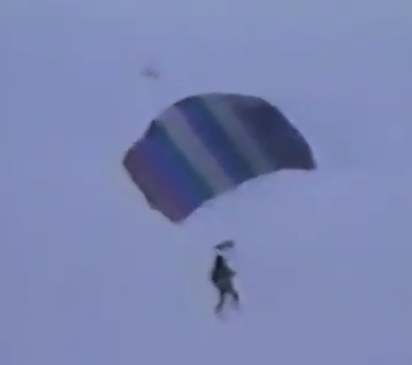 This guy definitely needed a parachute. When he landed on the pitcher’s mound, the mascot’s head came off!